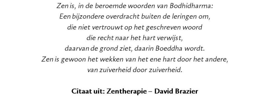 Onze intensieve zentrainingen kenmerken zich door persoonlijke zorg (kleine groepen), een warme sfeer en liefdevolle aandacht voor elkaar.
